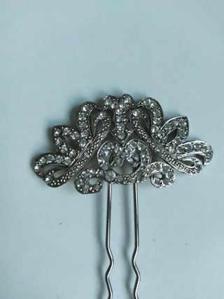 Precioso tocado para eventos, sin estrenar. Es de color gris plata y tiene un diseño elegante y delicado. - Ideal para bodas, bautizos o cualquier ocasión especial. - Incluye plumas para un toque sofisticado. - Material ligero y fácil de colocar.