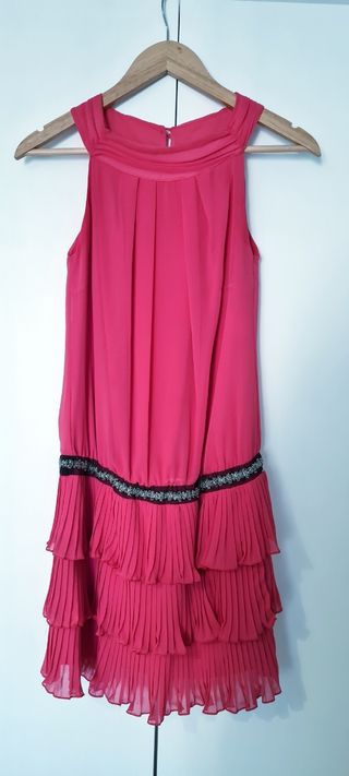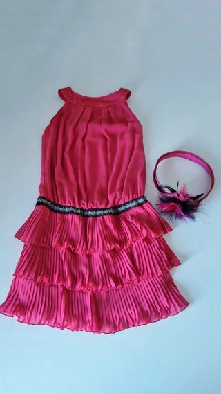 Conjunto de vestido y tocado color fucsia tipo charleston, ideal para fiesta o invitada. El vestido es de una tienda local de moda de fiesta, está adaptado a una talla XS o 34 (como referencia,yo mido 1,64) El tocado a conjunto es una pieza exclusiva hecha a mano. Se venden juntos. Utilizado solamente para una boda. *HAGO ENVÍOS