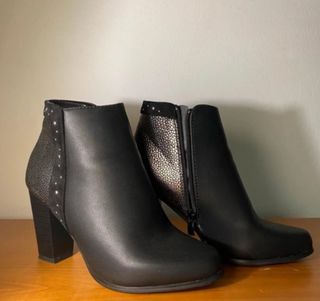 Botines de mujer elegantes y cómodos, ideales para cualquier ocasión. Se venden dos pares. - Diseño moderno y sofisticado. - Tacón cómodo y estable. - Material de alta calidad. - Detalles plateados.