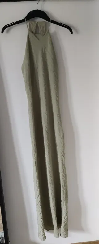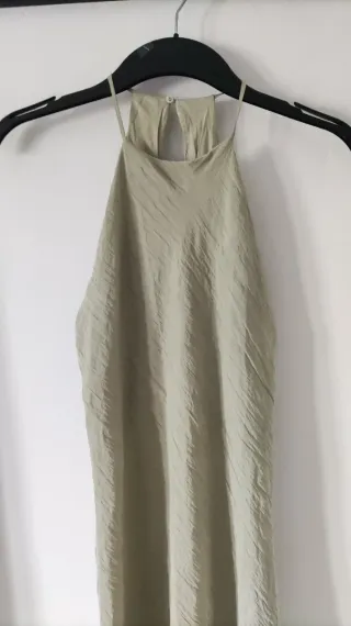 Elegante vestido largo de Zara en color verde oliva. Su diseño fluido y el tejido con textura le dan un toque especial. - Tirantes finos - Cuello halter