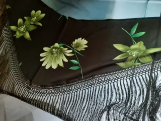 Mantoncillo de flamenca con un diseño vibrante y detalles bordados. En perfecto estado y cuidado genial. Si estas interesada tambien en los pendientes y ramillete no dudes en preguntar. Precio negociable. 💓