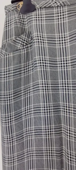 Falda de cuadros grises, ideal para entretiempo. - Diseño de cuadros. - Bolsillos laterales.