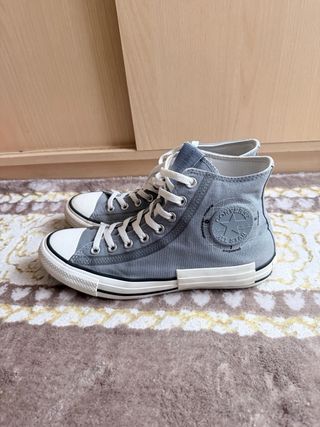 Zapatillas altas de lona en color gris. - Cierre con cordones blancos. - Suela de goma blanca. - Detalle de banda negra en la suela.