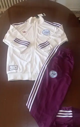 Conjunto de chándal del Ajax para la temporada 25/26. - Diseño con las icónicas tres rayas. - Escudo del equipo visible en ambas prendas. - Cremallera completa en la chaqueta.