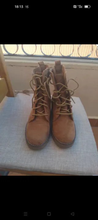 Botas de estilo casual en color camel. Perfectas para el día a día. - Cierre con cordones. - Tacón grueso.