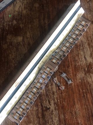 Pulsera de recambio en acero inoxidable para reloj con un diseño elegante que combina tonos dorados y plateados. - Ancho de 17mm. - Cierre mariposa de seguridad. - Eslabones intercambiables.