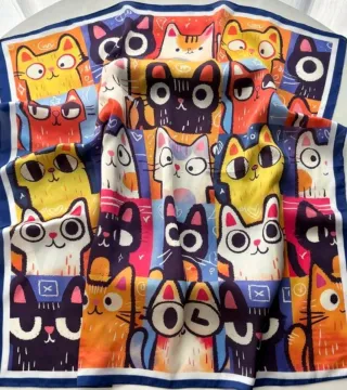 Pañuelo de cuello con un diseño vibrante y artístico. - Estampado abstracto con múltiples colores. - Acabado satinado.