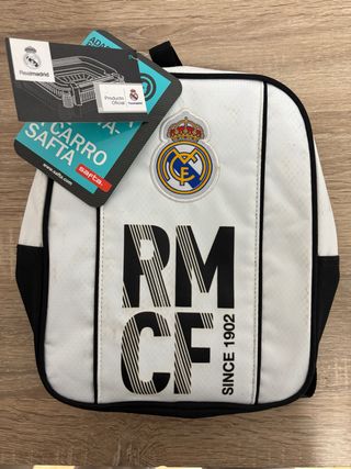 Mochila pequeña con el escudo del Real Madrid. - Diseño oficial del club. - Color blanco con detalles en negro. - Incluye etiquetas originales.