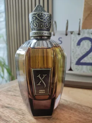 Este es un frasco de perfume Xerjoff Aqua Regia de 100ml. Pertenece a la exclusiva colección de Kemi. Totalmente nuevo, solo tiene una atomización realizada.