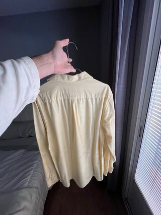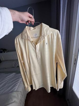Camisa de manga larga en tono amarillo suave. Presenta un diseño clásico con cuello y botones en la parte frontal. - Cuello camisero. - Puños abotonados. - Pequeño escudo bordado en el pecho. IDEAL PARA CUALQUIER OCASION PRECIO NEGOCIABLE SIN USO