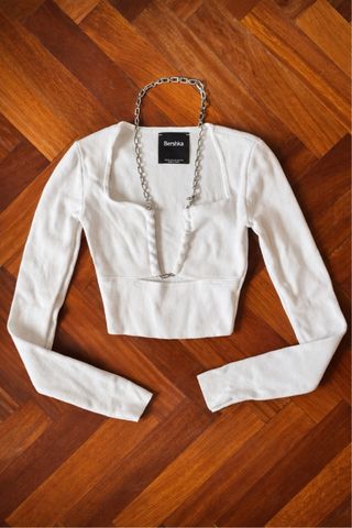 Top Bershka blanco crop top con cadena