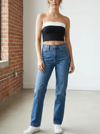 Top bandeau negro y blanco mujer