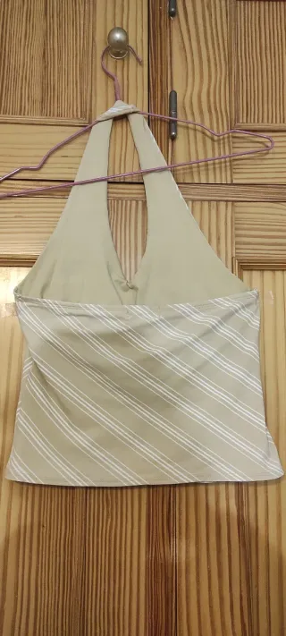 Top escote halter rayas beige y blanco
