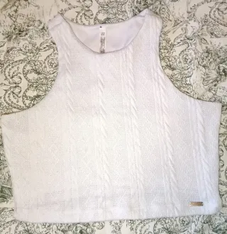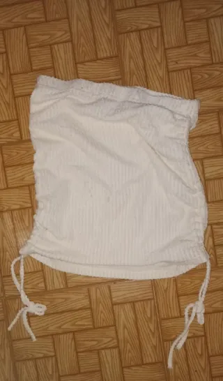 Top blanco con detalle fruncido y cordones ajustables. Se regala con la compra de artículos del perfil Solamente pidelo si vas a comprar algo No envio no me desplazo Si compras algo y lo quieres pidelo Esta usado - Tejido suave y elástico. - Diseño moderno y versátil.