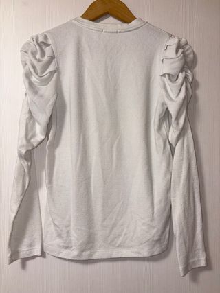 Top blanco de manga larga con un diseño moderno en los hombros. - Mangas abullonadas. - Cuello redondo.