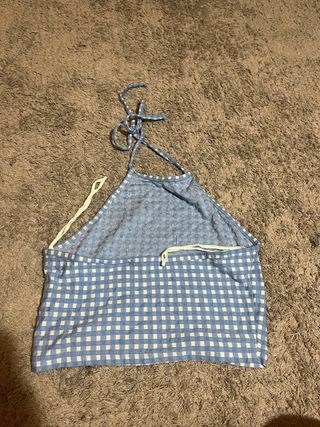 Crop top Stradivarius cuadros azul y blanco