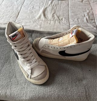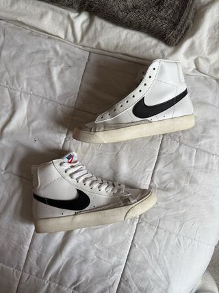 Talla 36 Zapatillas altas Nike Blazer en blanco y negro. le hace falta una agujeta - Diseño clásico de baloncesto. - Swoosh lateral en negro. - Suela de goma. - Cierre de cordones.