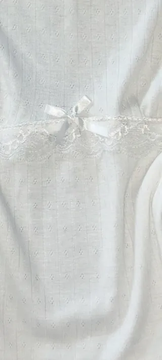 Precioso top blanco con detalles de encaje. - Escote cuadrado con borde de encaje. - Pequeño lazo decorativo en la parte delantera. - Mangas cortas con borde de encaje.