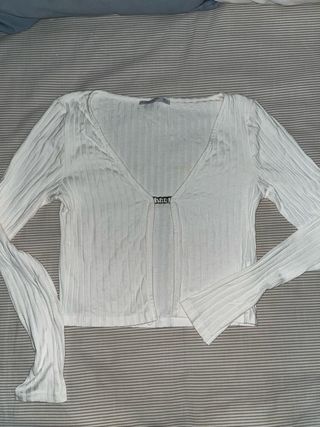 Top de Mango con botones al frente y cuello en V. Es de manga larga y corte ajustado. - Tejido acanalado. - Cierre de botones. - Diseño cropped. Si quieres más fotos me las puedes pedir :)