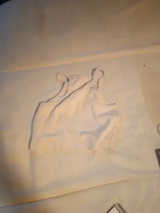 Top blanco sin tirantes, con un diseño moderno y cómodo. - Tejido acanalado. - Corte tipo tanga. - Es una M aunque en la foto no se aprecia mucho ya que se ha borrado un poco.
