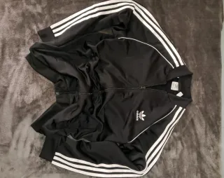Chaqueta deportiva Adidas Originals SST Track Top en color negro. Presenta el icónico diseño de las tres franjas blancas en las mangas. - Cierre de cremallera frontal. - Cuello alto. - Logo de Adidas bordado en el pecho.