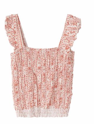 Bonito top con estampado floral. - Diseño fruncido en la parte delantera. - Tirantes finos. - Tejido texturizado.