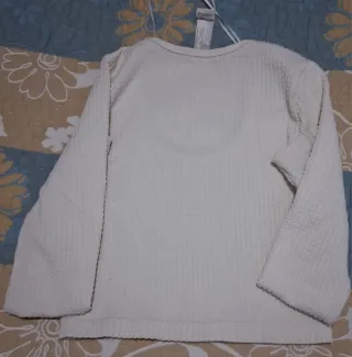 Top blanco de manga larga con detalle de volante en el bajo. Con poco uso y como nuevo - Tejido acanalado. - Manga larga. - Bajo con volante.