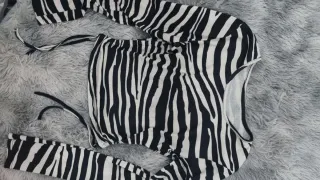 Top con estampado de cebra y mangas largas. Tiene cordones ajustables en los laterales para un ajuste personalizado. - Diseño de rayas blancas y negras. - Tejido elástico y cómodo. Talla única (M)
