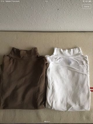 Lote de dos camisetas de manga larga, cuello perkins. - Una camiseta de color marrón topo. - Una camiseta de color blanco.