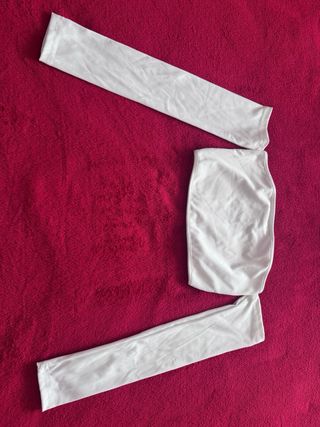 Crop top de manga larga con cuello alto. - Color blanco. - Diseño con cuello y mangas . - material elastano y viscosa Producto totalmente nuevo.