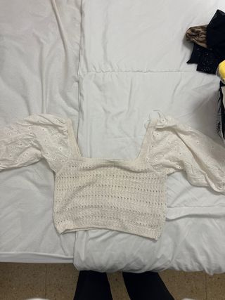 Blusa elegante de Zara con manga larga. - Diseño crop top. - Hombros con estructura. - Cremallera trasera. Tiene una pequeña tara que se aprecia en las fotos