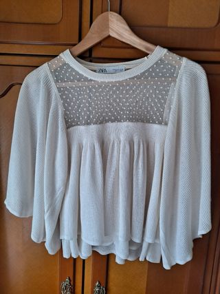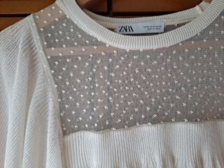Top de tul con bordados en blanco hueso. Transparente y suelto. Más de 200 prendas en mi perfil. #zara #zaraadict