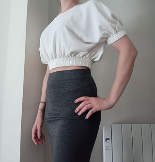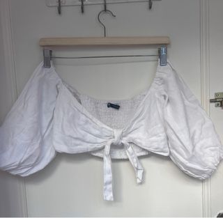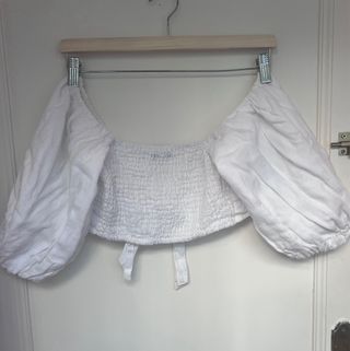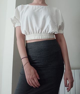 Precioso crop top de Zara en color blanco. Es de manga corta abullonada y tiene una goma en la cintura que lo hace muy favorecedor. - Perfecto estado. - Talla S. - Tejido ligero y fresco.