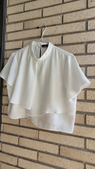 Camisa crop top de Zara, nueva y con etiquetas. - Diseño moderno y versátil. - Tejido ligero y cómodo. Cierre elástico