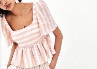 Bonito top de Zara con un diseño de rayas. - Escote cuadrado. - Mangas abullonadas. - Corte peplum.