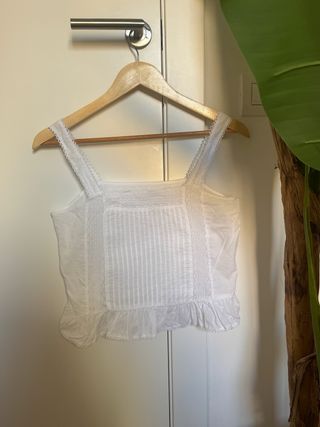 Precioso top blanco de Zara. Es de estilo romántico, con volantes de tul. - Es de tirantes.