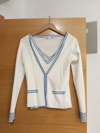 Elegante rebeca y top Zara blanco y azul Talla S