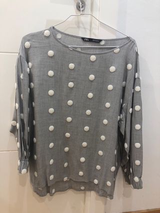 Blusa gris mujer con topos blancos Zara
