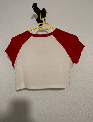 camiseta de manga corta de color blanco y rojo, en perfecto estado