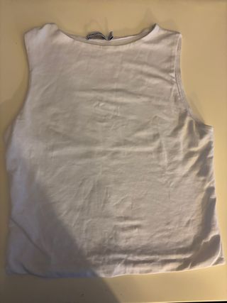 Top de punto de Zara en color blanco. Un básico versátil para cualquier ocasión. - Diseño sin mangas. - Cuello redondo acanalado. - Tejido de punto fino.