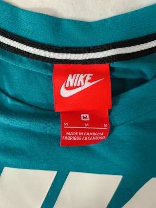 Top deportivo Nike de color turquesa. Diseño sin mangas. Logo grande de Nike en blanco.