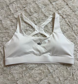 Top deportivo de Alo Yoga en color blanco. Diseño con tirantes cruzados en la espalda. - Logo de la marca en el pecho. - Banda inferior ancha. - Tejido suave y elástico.
