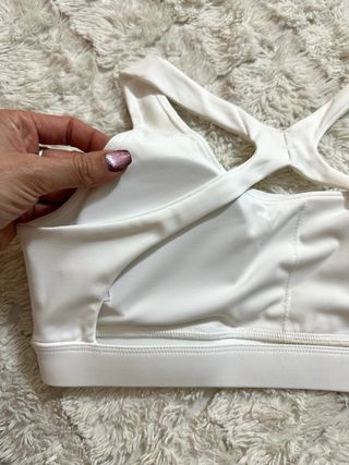 Top deportivo de la marca Fabletics en color blanco. Talla XS - Diseño con tirantes cruzados en la espalda. - Tejido suave y elástico.