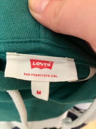 Sudadera corta de la marca Levi's con un diseño moderno y juvenil. - Diseño tricolor: verde, blanco y azul marino. - Logo de Levi's en el pecho. - Capucha con cordones. - Corte crop top.