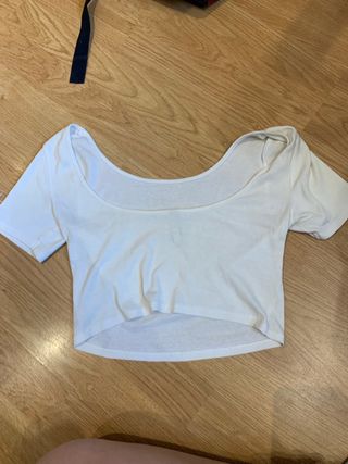 Crop top con escote barco blanco y talla S Stradivarius y espalda con escote descubierto