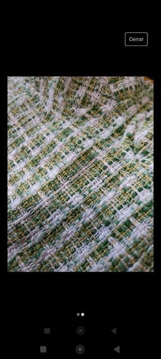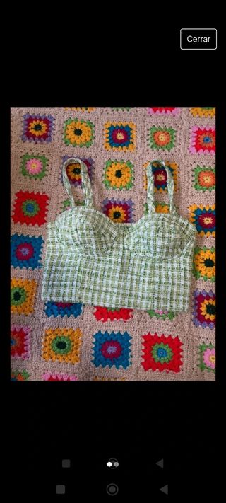 Crop top material tweed blanco y verde. Veraniego. XS.