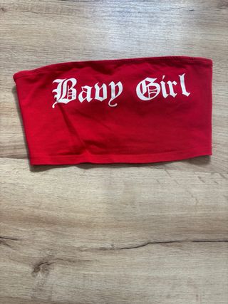 Top banda de color rojo con estampado blanco. - Diseño sin tirantes. - Tejido elástico.