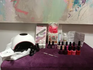 Lámpara para uñas LSQ 36 con instrucciones - Modelo: LSQ 36 - Color: Blanco Incluye utensilios para remover Pinceles Lote de pintauñas (10) Primer (2) Top Coat (3) Gel Polish (2)