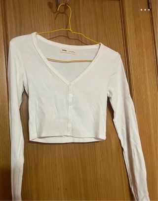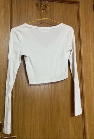 Top Bershka Blanco Manga Larga S
