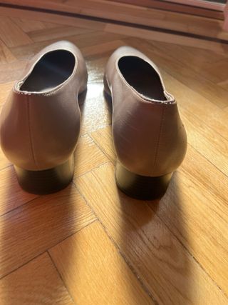 Elegantes zapatos de tacón bajo de Zara en un bonito tono gris topo. Perfectos para añadir un toque sofisticado a cualquier atuendo. En muy buen estado salvo algunas marcas de uso. Colección 2025 - Tacón de bloque - Punta fina